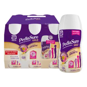 KEY INFORMATION – • Complete, Balanced Nutrition On The Go – •Get the assurance you need with PediaSure® Ready-to-Drink – • Complete, balanced formula with 34 essential nutrients and TripleSure system – • All conveniently packed in a bottle for your child’s school or outdoor days – • Now with 25% less sugar and 2…