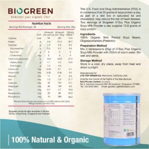 KEY INFORMATION KEY INFORMATION 100% Organic Skin Peeled Soya Beans. Source of Fibre, Iron & Magnesium. Low in Saturated Fat & Sodium, High in Protein. COUNTRY/PLACE OF ORIGIN COUNTRY/PLACE OF ORIGIN Malaysia PREPARATION PREPARATION Mix 2 tablespoons (25g) of OSoy Plus Organic Soya Milk Powder with 250ml of warm water. Stir well and serve. STORAGE…