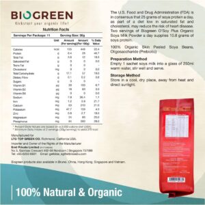 KEY INFORMATION KEY INFORMATION Formulated for Better Absorption & Diet Transition. 100% Organic Skin Peeled Soya Beans. Source of Fibre, Iron & Magnesium. Low in Saturated Fat & Sodium, High in Protein. COUNTRY/PLACE OF ORIGIN COUNTRY/PLACE OF ORIGIN Malaysia PREPARATION PREPARATION Empty 1 sachet of OSoy Plus Organic Soya Milk Powder into 250ml of warm…