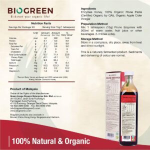 KEY INFORMATION KEY INFORMATION Made with organic prunes for rosy skin complexion. Cholesterol- and Trans-Fat Free, Very Low in Sodium and Low in Saturated Fat. Natural Enzymes. No Artificial Colourings. No Preservatives. No Additives. COUNTRY/PLACE OF ORIGIN COUNTRY/PLACE OF ORIGIN Malaysia PREPARATION PREPARATION Mix 1 tablespoon (15g) Prune Enzymes with 200ml of warm water, fruit…