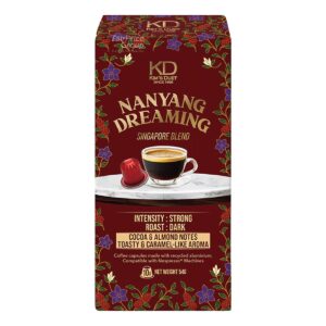 KEY INFORMATION KEY INFORMATION A premium Singapore blend, this dark roast coffee unfolds with deep notes of cocoa and almond, wrapped in a caramel-like aroma with every sip. Each coffee capsule is made with recycled alumnium. Compatible with Nespresso machines COUNTRY/PLACE OF ORIGIN COUNTRY/PLACE OF ORIGIN Singapore PREPARATION – • Compatible with Nespresso Machines. –…