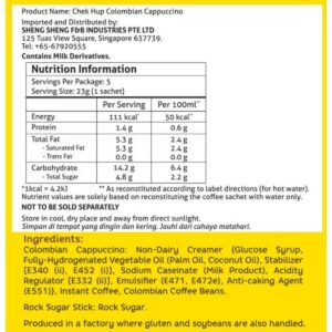 KEY INFORMATION KEY INFORMATION Bursting with the full aroma and body of finely ground Colombian coffee beans. No added artificial coffee flavouring. Exclusive own-made rock sugar sticks. COUNTRY/PLACE OF ORIGIN COUNTRY/PLACE OF ORIGIN Malaysia STORAGE INFORMATION STORAGE INFORMATION Room Temperature