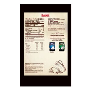 KEY INFORMATION KEY INFORMATION Packed with the finest grade grounded Arabica and Robusta coffee beans blended with sugar, packed neatly and conveniently in sachets. This special blend of coffee has less sugar level which contributes to lower calories, yet maintains its intensely aromatic and full-bodied characteristics. COUNTRY/PLACE OF ORIGIN COUNTRY/PLACE OF ORIGIN Malaysia PREPARATION –…