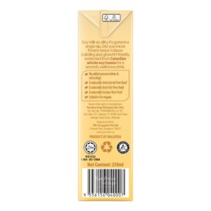 KEY INFORMATION – • Made with whole soy beans – • No added preservatives COUNTRY/PLACE OF ORIGIN COUNTRY/PLACE OF ORIGIN Malaysia PREPARATION – • Directions: – 1. Shake immediately – 2. Once opened, consumed immediately – • Note: – Sedimentation and creaming are natural occurrences