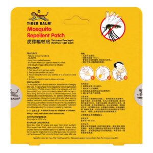 KEY INFORMATION – • Long lasting – • No deet – • Natural active ingredients – • Excellent protection against mosquito bites – • Individually wrapped to preserve efficacy COUNTRY/PLACE OF ORIGIN COUNTRY/PLACE OF ORIGIN Singapore PREPARATION – Directions: – 1. Tear pouch and remove patch – 2. Peel protective film off patch – 3….