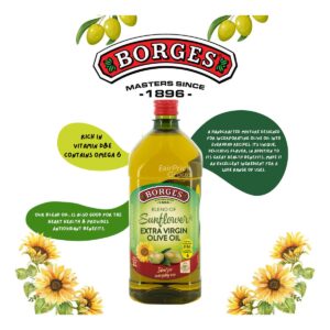 KEY INFORMATION KEY INFORMATION This well-balanced formula of Extra Virgin Olive Oil and Sunflower Oil contains Omega 6, that helps to maintain healthy cholesterol and heart health. It also contains Vitamin E, which contributes to the protection of cells from oxidative stress. Ideal for high-heat daily cooking while adding a touch of olive oil flavour….