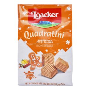 KEY INFORMATION KEY INFORMATION When the cold comes, nothing could be better than a treat with all the poetry of winter: Quadratini Gingerbread. You’ll find five crispy wafers with four layers of heavenly cream filling (74% of the product) enriched with an exquisite blend of typical gingerbread spices: cinnamon, fennel, coriander, ginger, cloves, allspice, mace,…