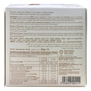 KEY INFORMATION KEY INFORMATION Almonds coated with bittersweet chocolate. COUNTRY/PLACE OF ORIGIN COUNTRY/PLACE OF ORIGIN Malaysia PREPARATION PREPARATION Best between 18°C – 23°C STORAGE INFORMATION STORAGE INFORMATION Store in cool and dry place