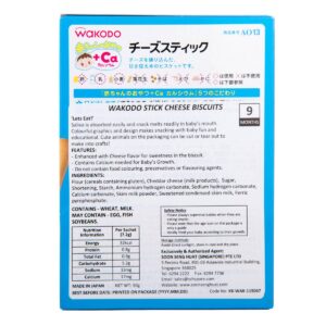 KEY INFORMATION KEY INFORMATION Wakodo Stick Cheese Biscuits is enhanced with cheese flavour for sweetness, contains iron and calcium needed for baby’s growth and does not contain food colouring, preservatives or flavouring agents. COUNTRY/PLACE OF ORIGIN COUNTRY/PLACE OF ORIGIN Japan STORAGE INFORMATION – • Store in a cool dry and place – • Avoid direct…