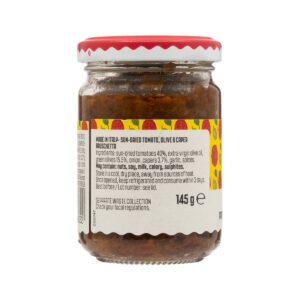KEY INFORMATION KEY INFORMATION Chopped dried tomatoes and capers with an oregano scent. Rich in extra virgin olive oil and Mediterranean aromas and flavours. COUNTRY/PLACE OF ORIGIN COUNTRY/PLACE OF ORIGIN Italy STORAGE INFORMATION STORAGE INFORMATION Before Opening: Store in a cool and dry place
