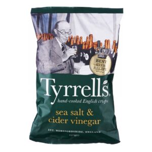 KEY INFORMATION KEY INFORMATION Tyrrell Sea Salt and Cider Vinegar Potato Chips is a subtly mixture of sea salt and cider vingar which made with finest Herefordshire potatoes, complete with jackets. Hand cooked to achieve our signature crunch. Made with all natural ingredients. COUNTRY/PLACE OF ORIGIN COUNTRY/PLACE OF ORIGIN United Kingdom