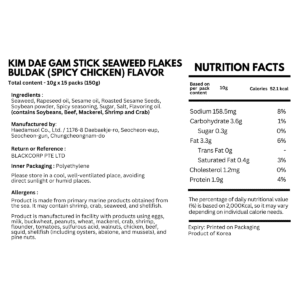 KEY INFORMATION – – Made with natural ingredients and no artificial additives. – – A nutritious snack option packed with vitamins and minerals. – – It is the perfect crispy snack for any time of day. COUNTRY/PLACE OF ORIGIN COUNTRY/PLACE OF ORIGIN South Korea STORAGE INFORMATION STORAGE INFORMATION Store in a dry place away from…