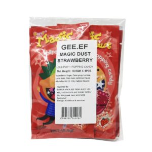 KEY INFORMATION KEY INFORMATION Lick and dip the lollipop into the popping candy powder and enjoy the crackling sensation on your tongue. This popping candy is with strawberry flavour and each bag inside have 4 packets. COUNTRY/PLACE OF ORIGIN COUNTRY/PLACE OF ORIGIN China STORAGE INFORMATION STORAGE INFORMATION Keep in cool and dry place, avoid heat…