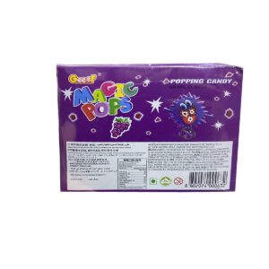 KEY INFORMATION KEY INFORMATION Lick and dip the lollipop into the popping candy powder and enjoy the crackling sensation on your tongue. This popping candy is with grape flavour and each bag inside have 4 packets. COUNTRY/PLACE OF ORIGIN COUNTRY/PLACE OF ORIGIN China STORAGE INFORMATION STORAGE INFORMATION Keep in cool and dry place, avoid heat…