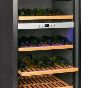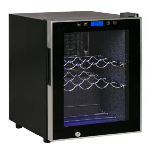 KEY INFORMATION KEY INFORMATION Cooling System: Thermoelectric Refrigeration, Wind cooling system, Noise operation (38dB), Low Power Consumption Capacity (btls – vol): 12 bottles – 33L Description: Digital Temperature control / White Interior Light / Recessed handle, Chrome metal wire racks Rated Voltage & Frequency : 220-240V, 50~60Hz Power Consumption: 50 watts Lamp Power: 0.6 watts…