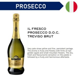 KEY INFORMATION – Prosecco – *JWC discount is not applicable on Marketplace products* COUNTRY/PLACE OF ORIGIN COUNTRY/PLACE OF ORIGIN Italy PREPARATION – Prosecco – *JWC discount is not applicable on Marketplace products* STORAGE INFORMATION STORAGE INFORMATION Store in cool area