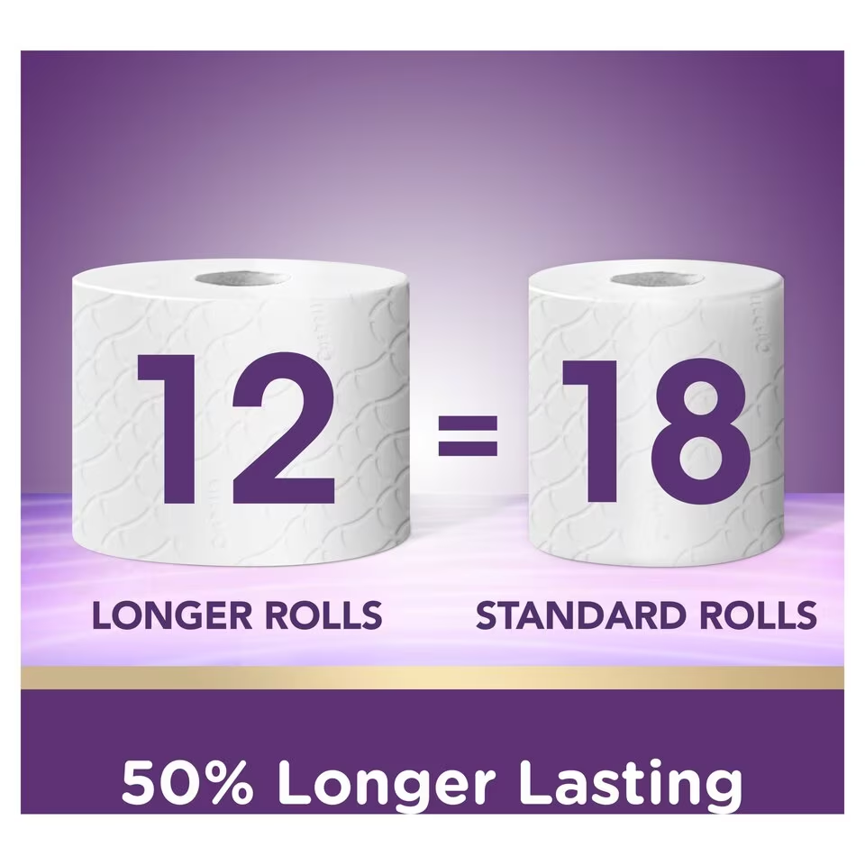 Cushelle Quilted 3ply Toilet Tissue 12 x 50% Longer Lasting Rolls*. Every 3ply sheet of velvety soft Cushelle Quilted is made with plump air cushions. Cushiony soft and highly absorbent for a comfortable clean feeling every time. Now longer rolls. so if it seems like it’s lasting longer. that’s because it is! Use with Cushelle Fresh Toilet Wipes for a fresher. cleaner feeling. *50% Longer Lasting Rolls. compared to standard rolls. 12 Quilted Toilet Tissue Rolls. 236 sheets per roll