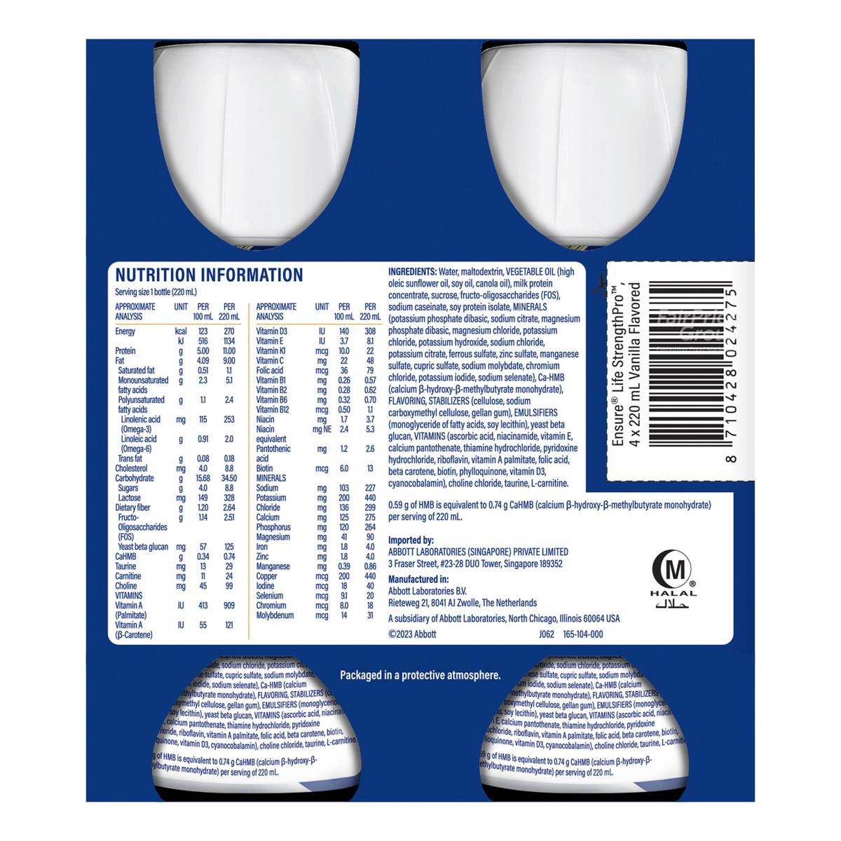 | – | Scientifically formulated with 34 key nutrients to deliver complete, balanced nutrition, new Ensure Life StrengthPro delivers a dual-action formula: |