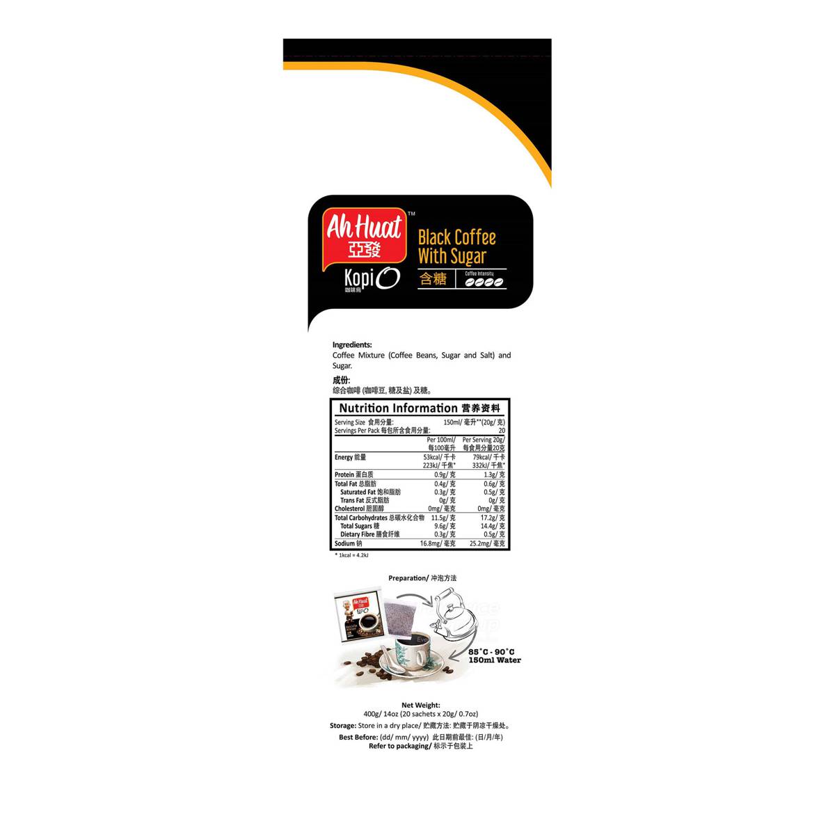 | KEY INFORMATION | The original flavour with bitter and slightly sweet fragrance for coffee lovers who like a hot cup of traditional coffee. |