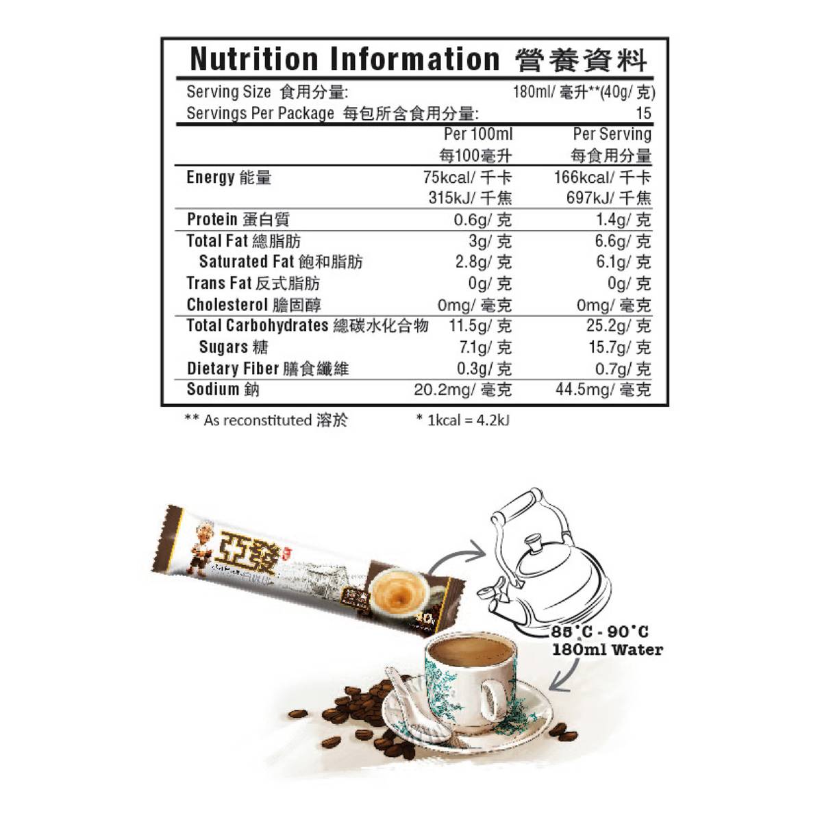 | PREPARATION | Pour one sachet in a cup and add 180ml of hot water |