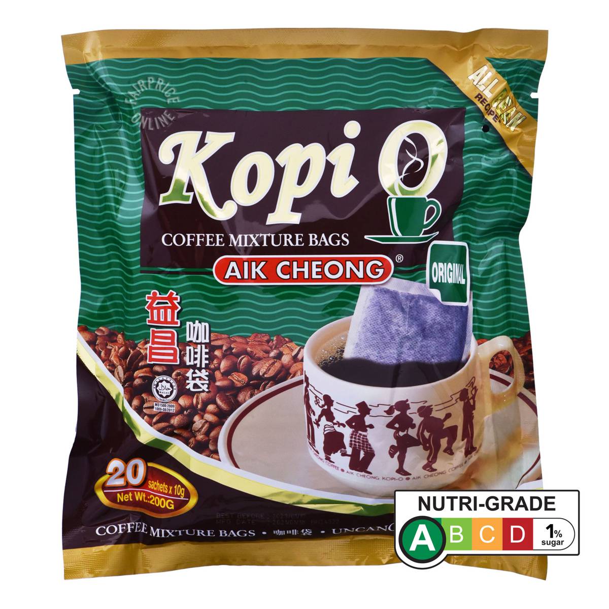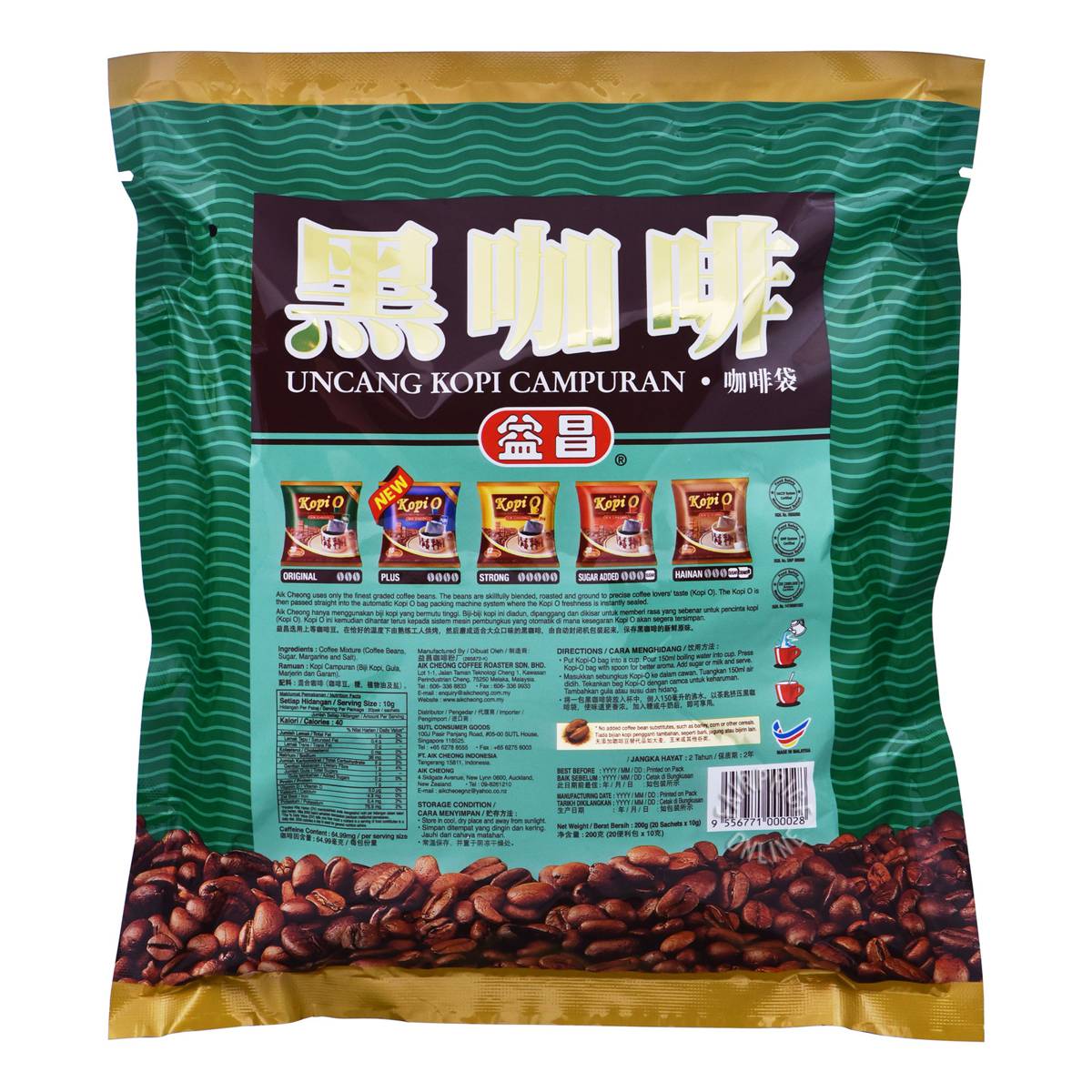 | KEY INFORMATION | Aik Cheong Coffee uses only the finest graded coffee beans. The beans are skillfully blended, roasted and ground to precise coffee lover’s taste. The packaging is then sealed to retain freshness. It contains no added coffee bean substitutes, such as barley, corn or other cereals, |
