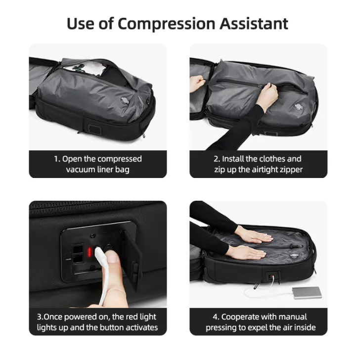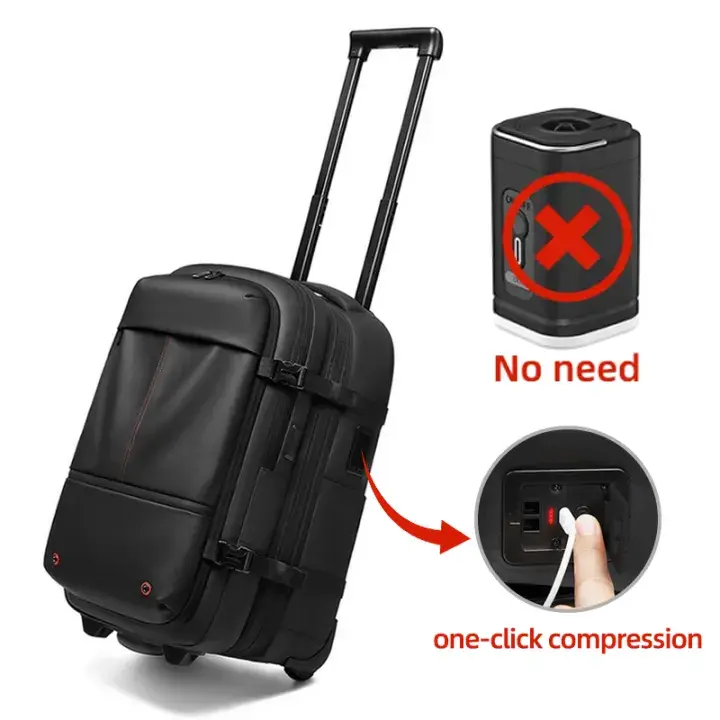 Vacuum Backpack / Rolling Suitcase (2-in-1) with Integrated Pump and USB/Type-C Charging Port