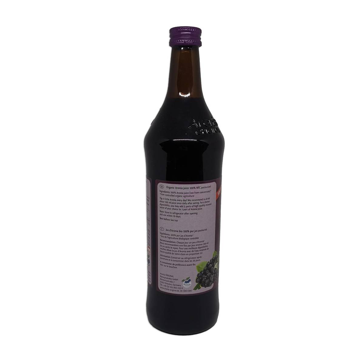 | KEY INFORMATION | With our organic aronia juice you experience the taste of sun-ripened aronia berries from 100% German cultivation. The fruity-tart not-from-concentrate juice comes from the first pressing and, according to the law, does not contain any additives such as preservatives, colorings or flavorings. Aronia juice from Aronia ORIGINAL not only stands for high quality, but also for certified, natural agriculture in Germany. Selected raw materials and a real connection to regional suppliers guarantee short transport routes and outstanding product quality. Our aronia berries are only pressed once so that our juices not only taste intense, but also retain the abundance of their natural ingredients. This creates a direct juice, also known as mother juice, which, apart from the best organic aronia berries, only contains love. |