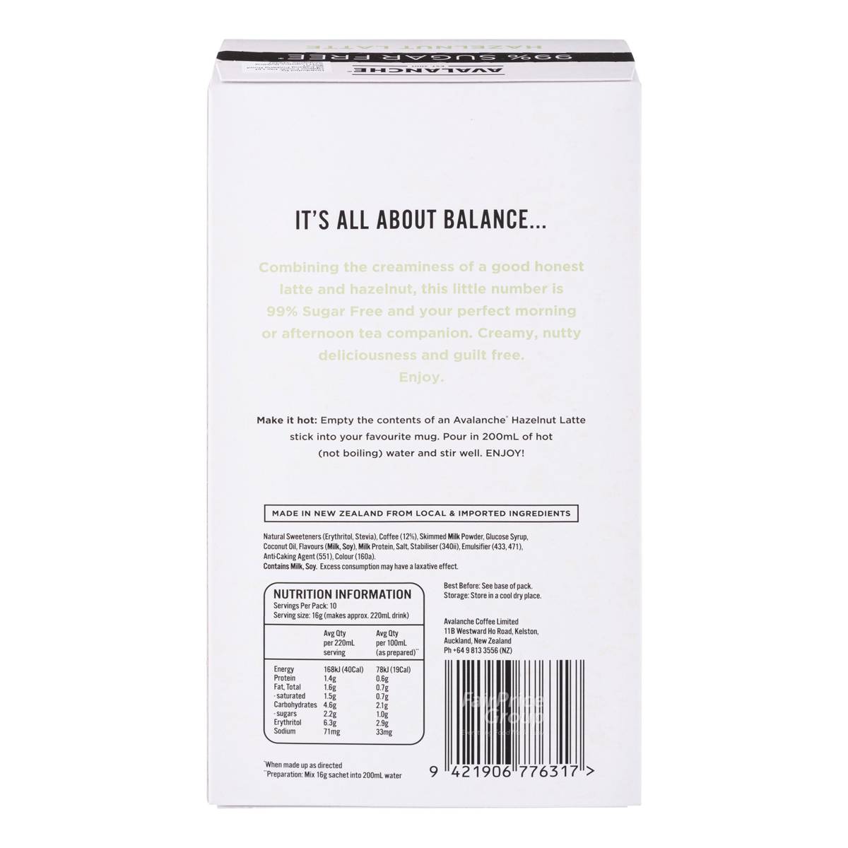 Avalanche 99% Sugar Free – Hazelnut Latte