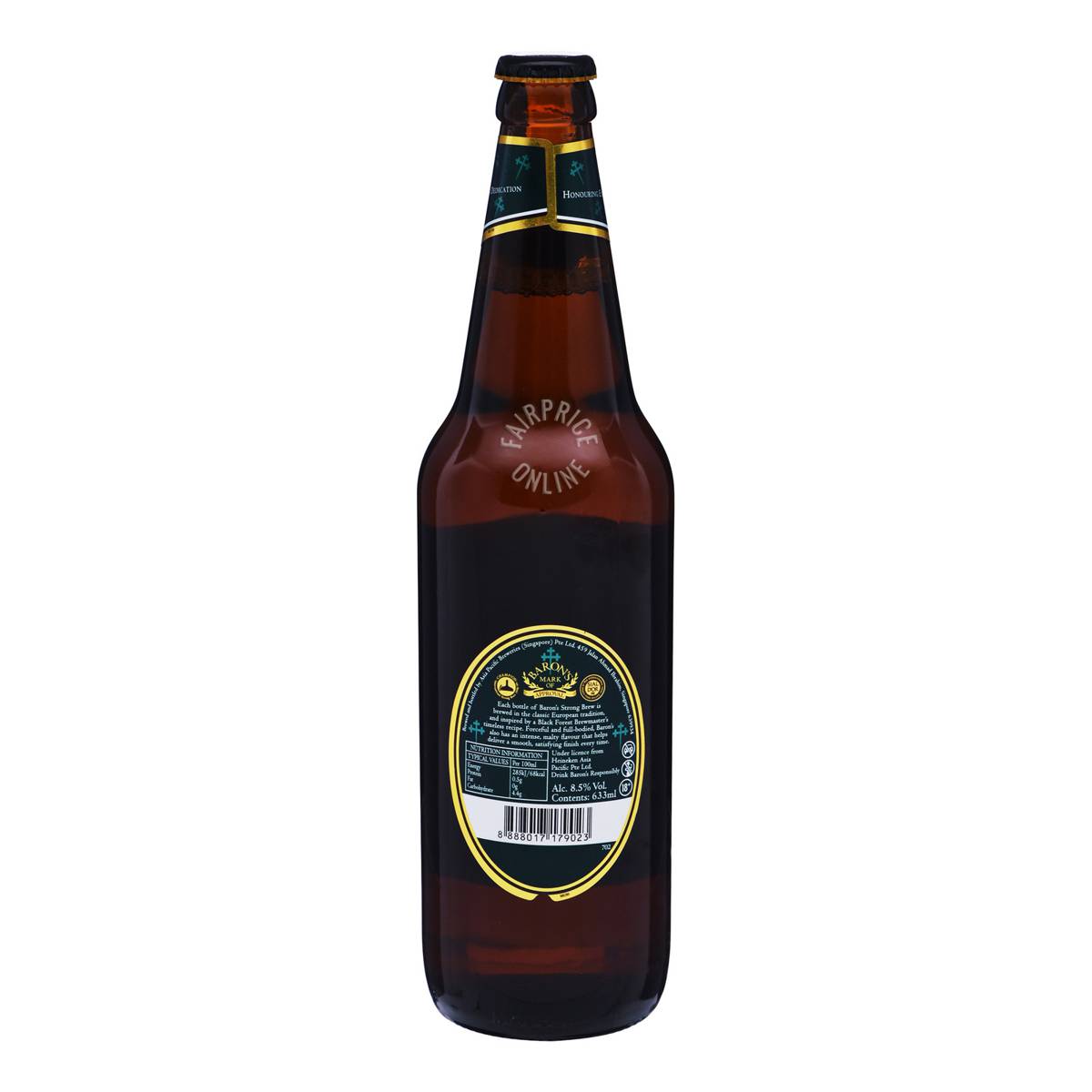 | KEY INFORMATION | Each bottle of Baron’s Strong Brew is brewed in the classic European tradition, and inspired by a Black Forest Brewmaster’s timeless recipe. Forceful and full-bodied, Baron’s also has an intense, malty flavour that helps deliver a smooth, satisfying finish every time. |