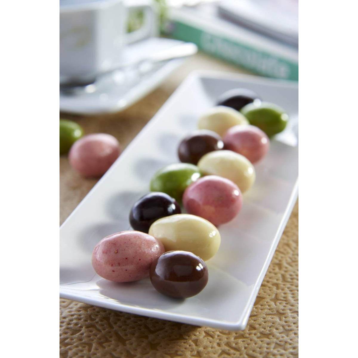 | KEY INFORMATION | Our Dragees mixed chocolate is a pop can of joy with 5 colorful flavors to choose from. Take your pick from our milk chocolate coated almonds, white chocolate coated almonds, dark chocolate coated almonds, green tea chocolate coated almonds and strawberry coated almonds. |