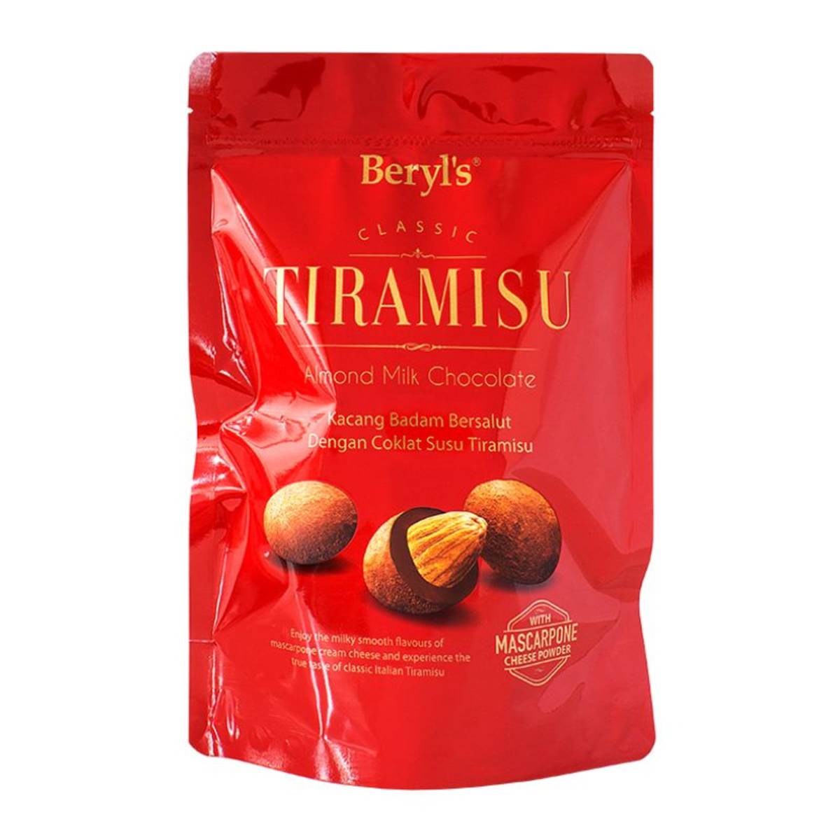 | KEY INFORMATION | A whole roasted almond nestled in a coat of rich tiramisu milk chocolate and dusted with cacao powder. A taste of Italian heaven in your mouth! Packed In a packet for your convenience. |