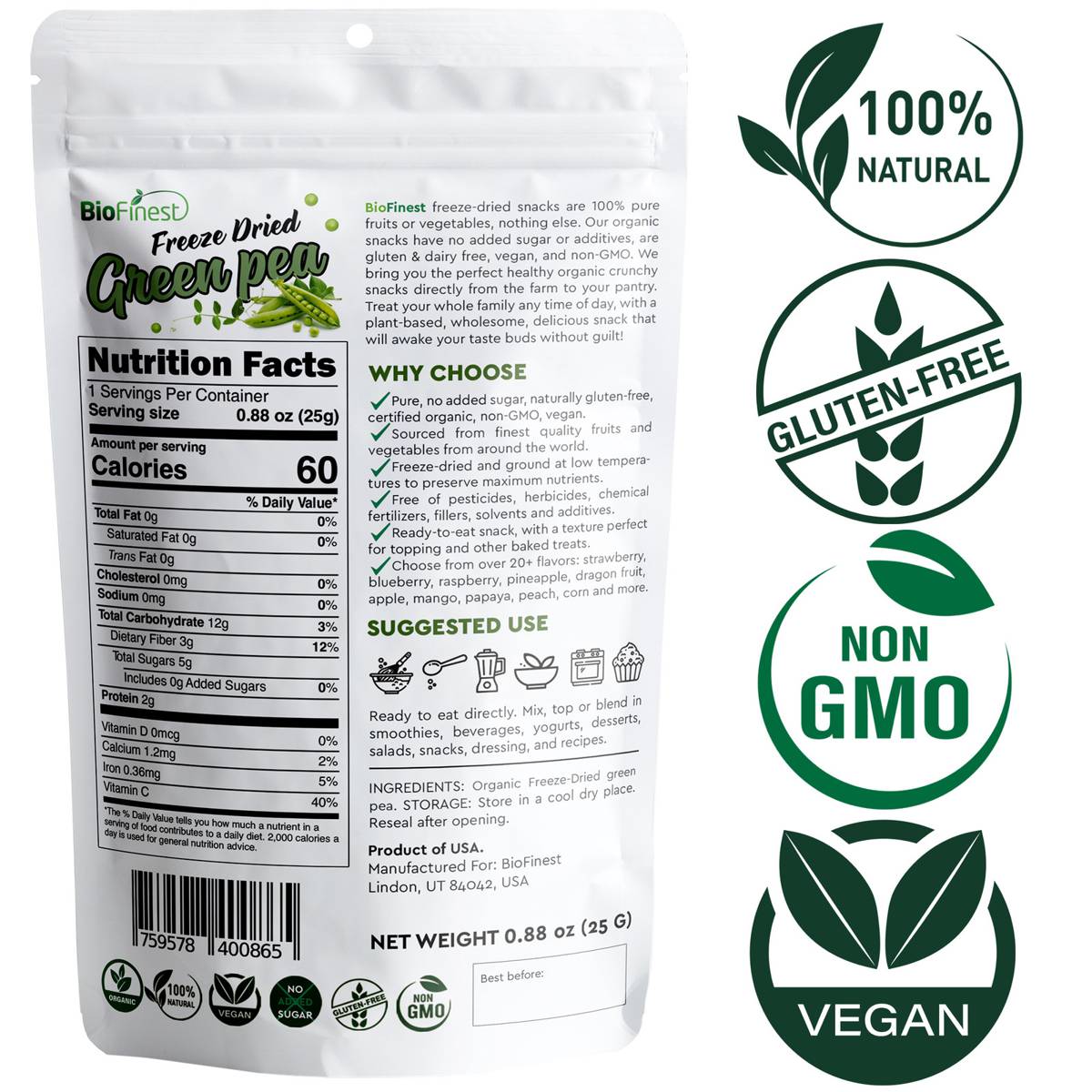 Biofinest Freeze-Dried Green Pea Snack Organic Fruit No Sugar