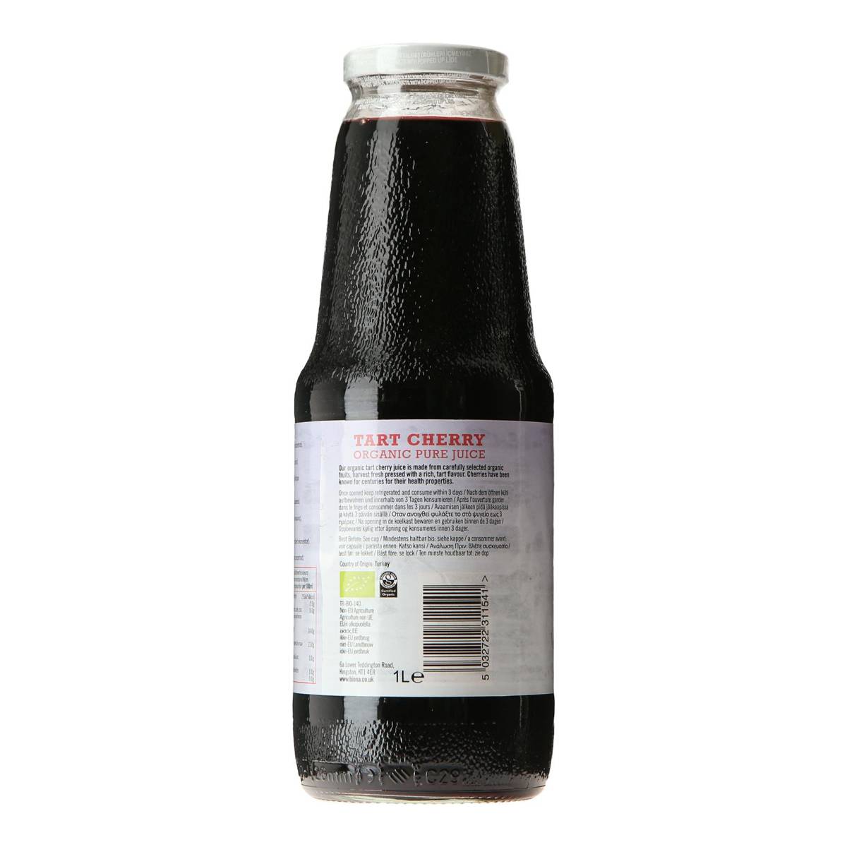 | KEY INFORMATION | A sophisticated alternative to breakfast juices, our organic tart cherry juice is sweet and zesty. Our specially selected organic farmers press freshly harvested tart cherries to create a deep red juice that’s delicious served chilled. Experiment by using it to create a simple cherry drizzle for desserts, or even add it to prosecco for an elegant take on a bellini cocktail. |