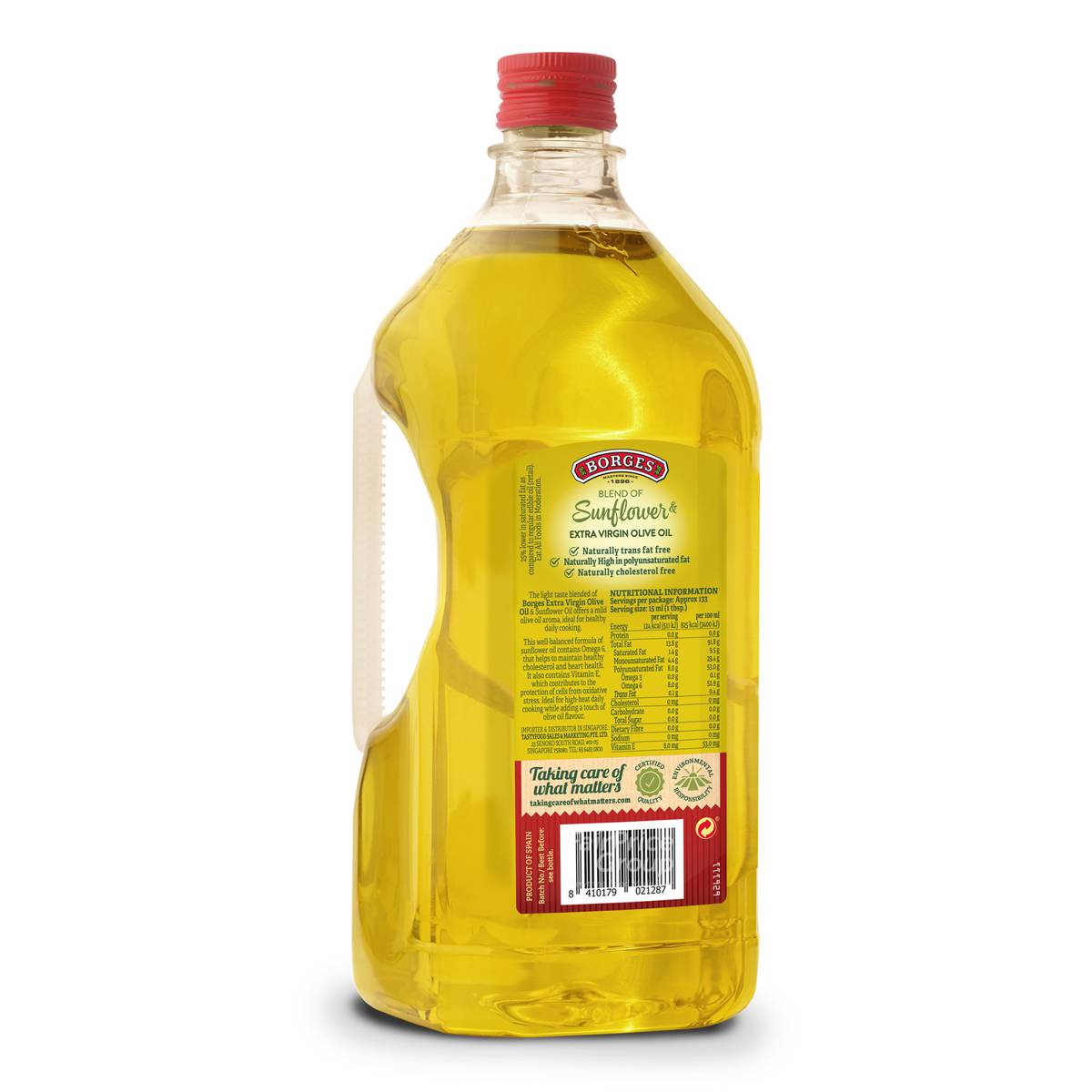 | KEY INFORMATION | This well-balanced formula of Extra Virgin Olive Oil and Sunflower Oil contains Omega 6, that helps to maintain healthy cholesterol and heart health. It also contains Vitamin E, which contributes to the protection of cells from oxidative stress. Ideal for high-heat daily cooking while adding a touch of olive oil flavour. |