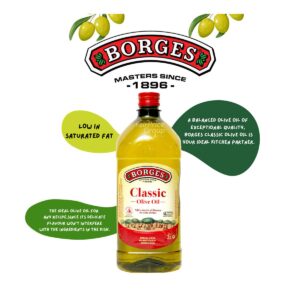| KEY INFORMATION | Borges olive oil packaged in a glass bottle. |
