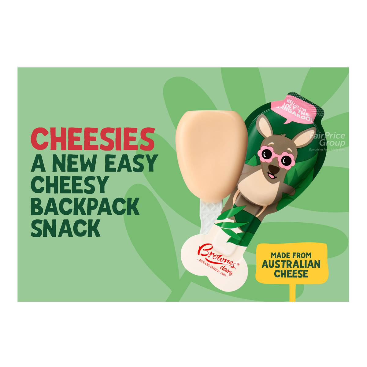 | – | Made by Australia’s oldest dairy, Cheesies are a yummy snack both mum and kids will love. Our Cheesies are made with natural cheese using milk sourced from our Australian farms. Cheesies, they’re easy cheesy! |