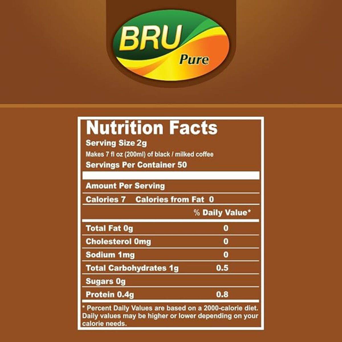 | – | – Bru Pure Coffee Made from a fine blend of choicest plantations and robust beans Made from a fine blend of choicest plantations and robust beans |