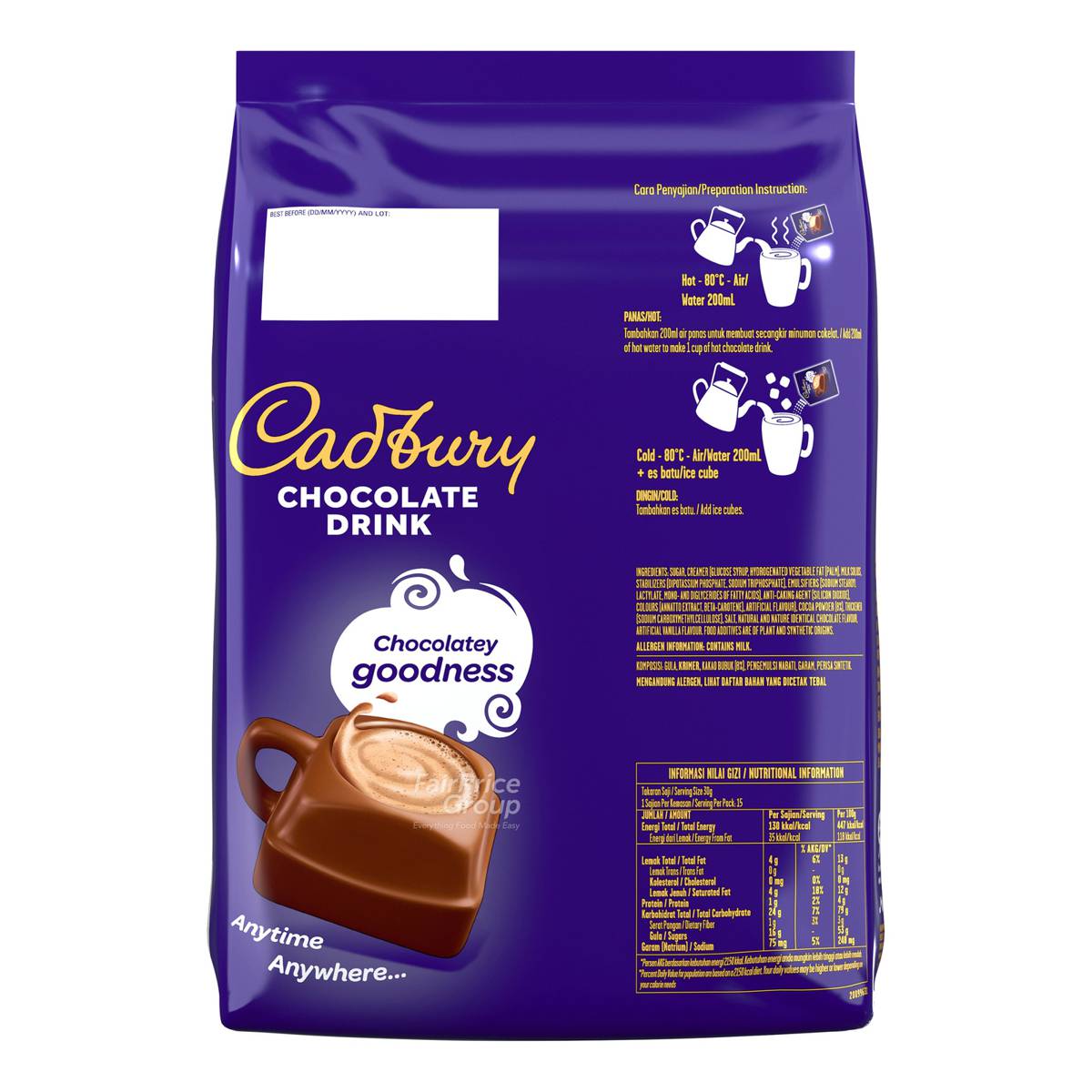 | – | • Chocolaty goodness of Cadbury 3 in 1 Hot Chocolate Drink anytime, anywhere |