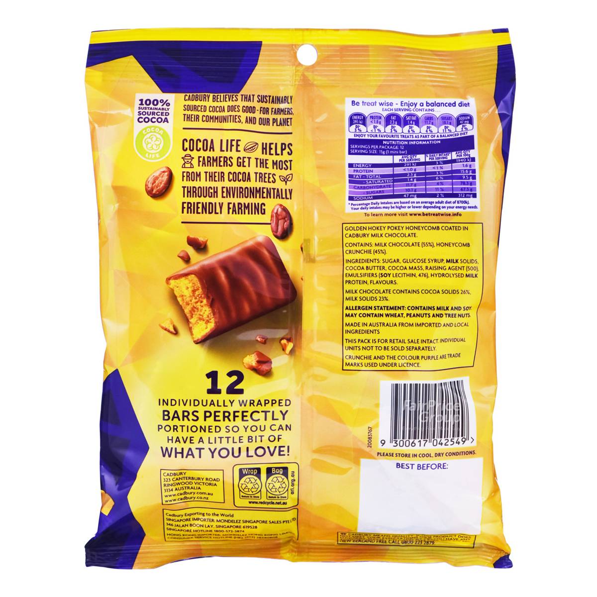 | – | • Golden hokey pokey honeycomb covered in Cadbury milk chocolate. |