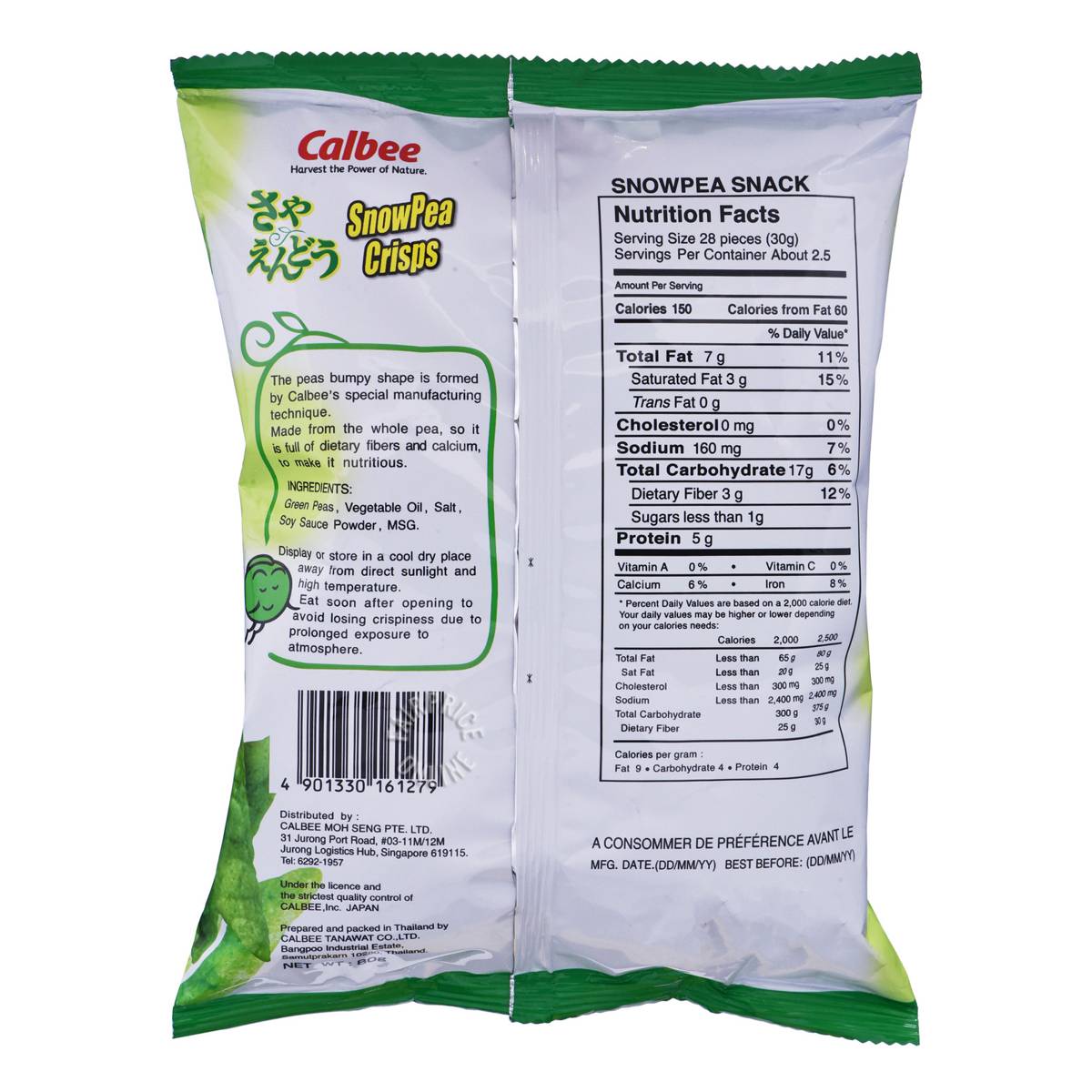 | – | • Peas bumpy shape is formed by Calbee’s special manufacturing technique |