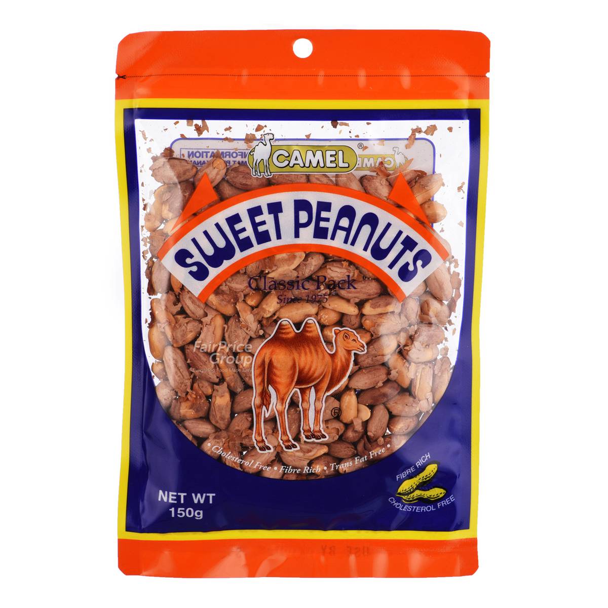 | KEY INFORMATION | Very lightly sweetened and oven-roasted, Camel Sweet Peanuts have long been a favourite of folks who love to enjoy peanut kernels still in their fragrant skins. This very Asian touch lends a unique taste and texture to a simplebut delicious product. Camel Sweet Peanuts make a fresh and delicious treat as it is fibre rich and cholesterol free |