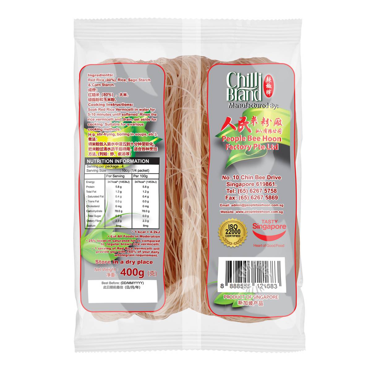 | KEY INFORMATION | Chilli Brand Red Rice Vermicelli is a healthier choice vermicelli made from red rice, which is higher in wholegrains, fibre, iron and antioxidants. It is an easy and delicious way to incorporate more wholegrains into your diet. |