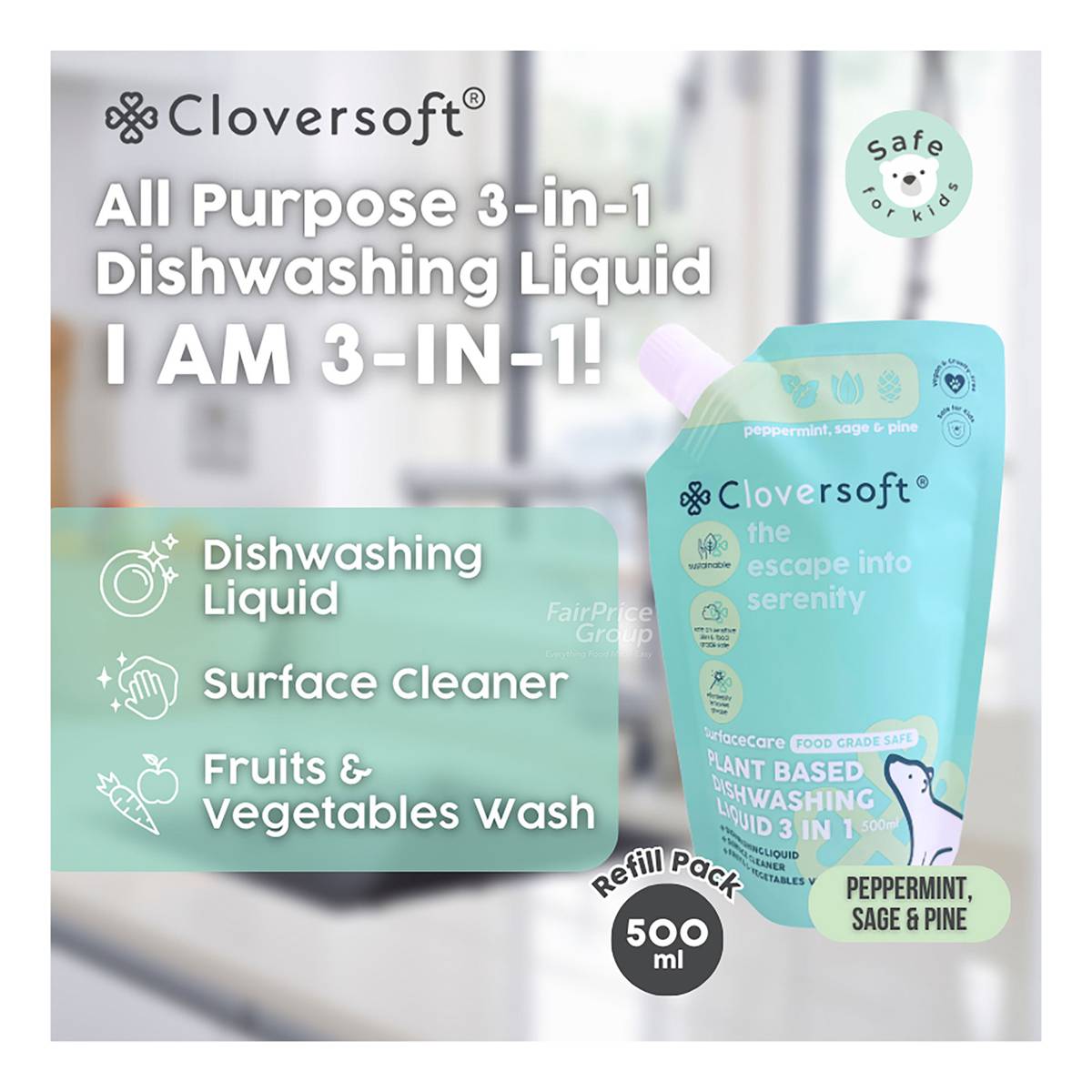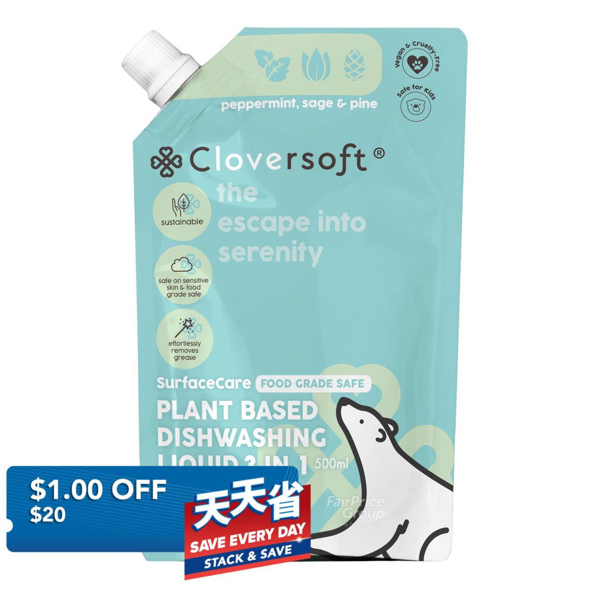 Cloversoft Dishwashing Liquid Refill – Peppermint, Sage & Pine