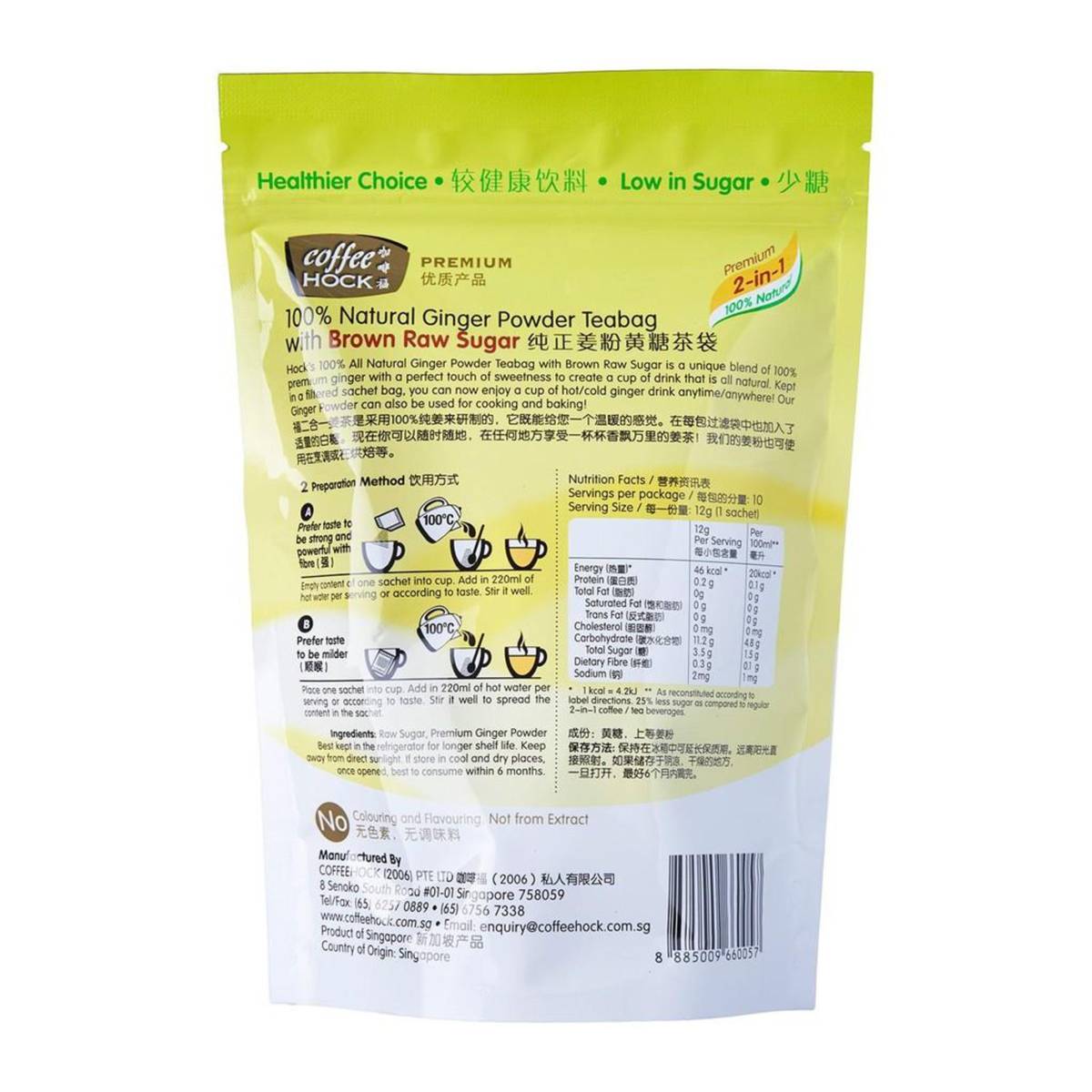 | KEY INFORMATION | To have a cup of ginger powder drink the most natural way, Hock’s 2-in-1 100-percent All Natural Ginger Powder Drink with Less Sugar is perfect for you. It comes straight from the source made from natural old ginger, not an extract. It contains no coloring or flavoring. Our ginger powder can be used for cooking, making desserts or even used for marination. Can be added to sweet potato soup, green bean soup, glutinous rice ball, longan drinks, milk tea, soya bean milk-based and desserts. |