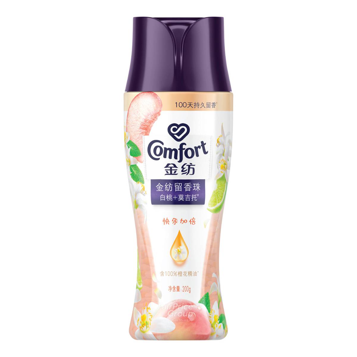 | – | If bountiful happiness and joy has a scent, it must be that of Comfort White Peach & Mojito Fragrance Booster Beads. With a gentle rub of your freshly laundered clothes, take in a refreshing bubbling of joyful mojito and the lively sweetness of juicy white peach. |