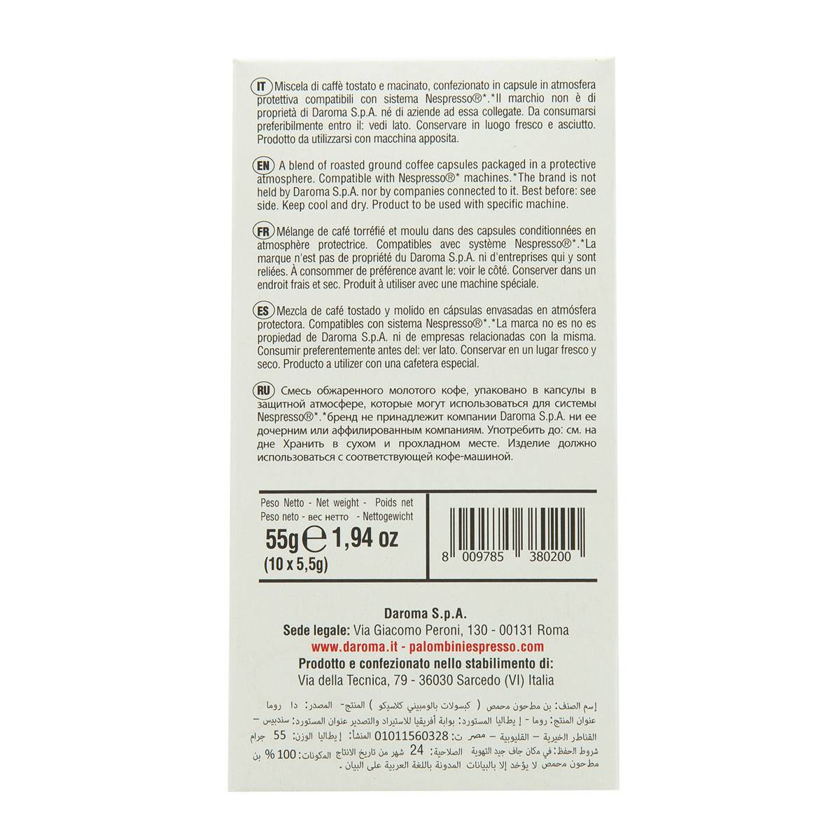 Daroma Palombini Nespresso Compatible Capsules Classico