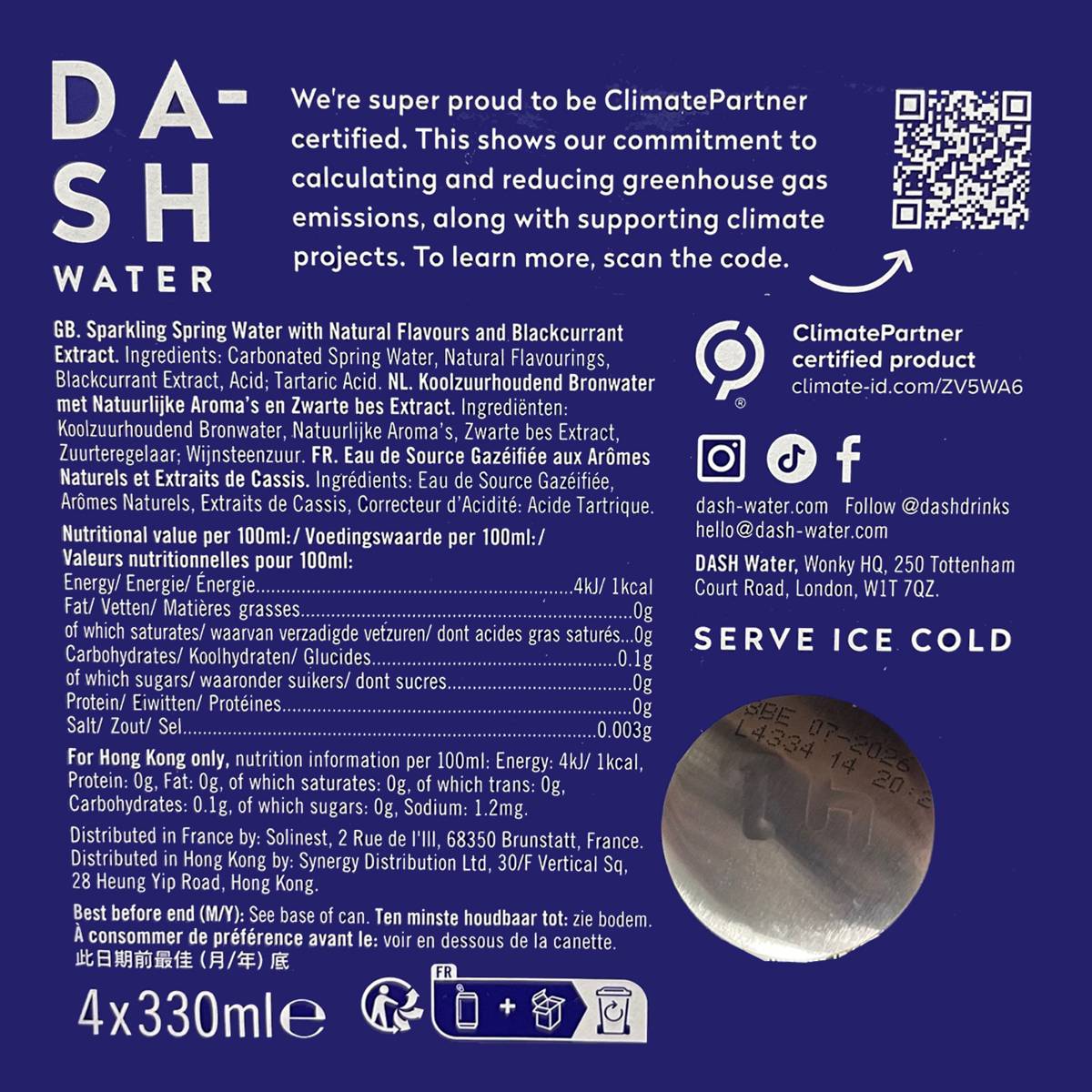 | KEY INFORMATION | British sparkling spring water is infused with whole blackcurrant for a crisp dash of flavour to naturally hydrate you while reducing food waste. |
