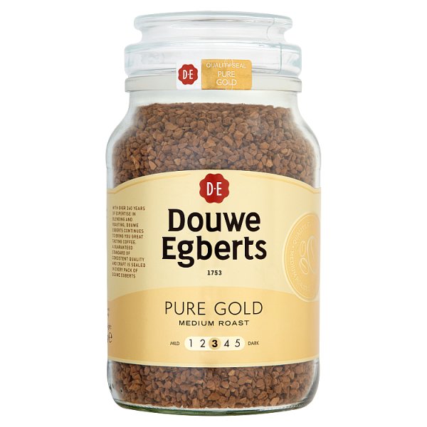Indulge in the rich taste and delightful aroma of Douwe Egberts Pure Gold Medium Roast Instant Coffee. Crafted from a premium blend of carefully selected beans. this coffee offers a perfectly balanced flavour. making it an ideal choice for any time of day.