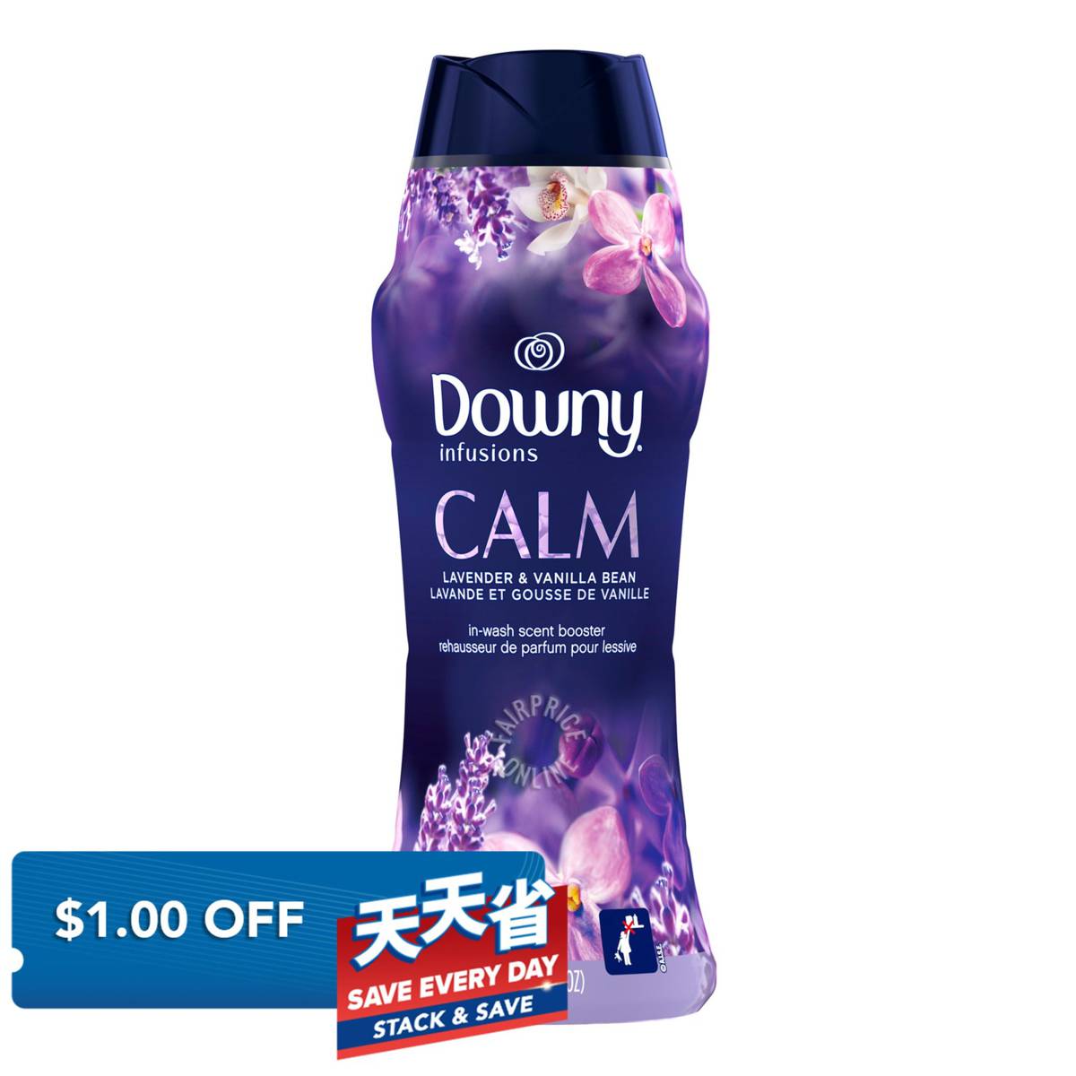 | KEY INFORMATION | The soothing scents of lavender and vanilla bean flutter to life in Downy Infusions Calm In-Wash Scent Booster Beads, for clothes that smell as comforting as they feel. Your clothes will have a calming lavender scent after you use this scented fabric enhancer in your laundry. Safe for all fabrics and washing machines, giving your clothes 12 weeks of long-lasting scent from wash until wear |