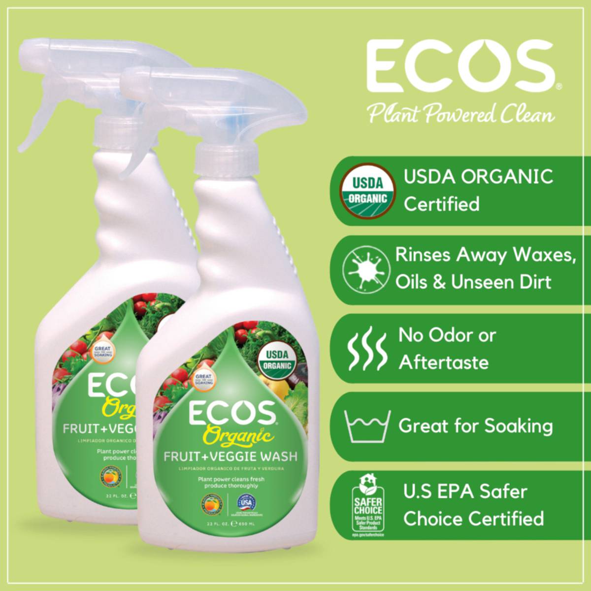 | – | – ECOS USDA Organic Fruit + Veggie Wash, plant-power cleans fresh produce thoroughly. |